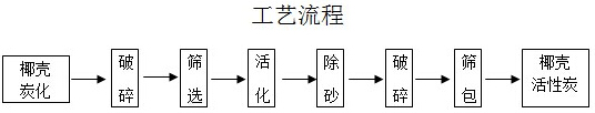 以椰殼、杏核等硬質果殼為原料生產的不定形顆粒炭,主要用于氣相吸附、催化劑和催化劑載體,其工藝為椰殼、果殼先炭化,經破碎篩選至一定粒度后進入活化爐。活化后,經振動篩、除砂機分離砂石,鐵釘?shù)入s質,再經機械破碎篩選成所需粒度的成品椰殼活性炭。